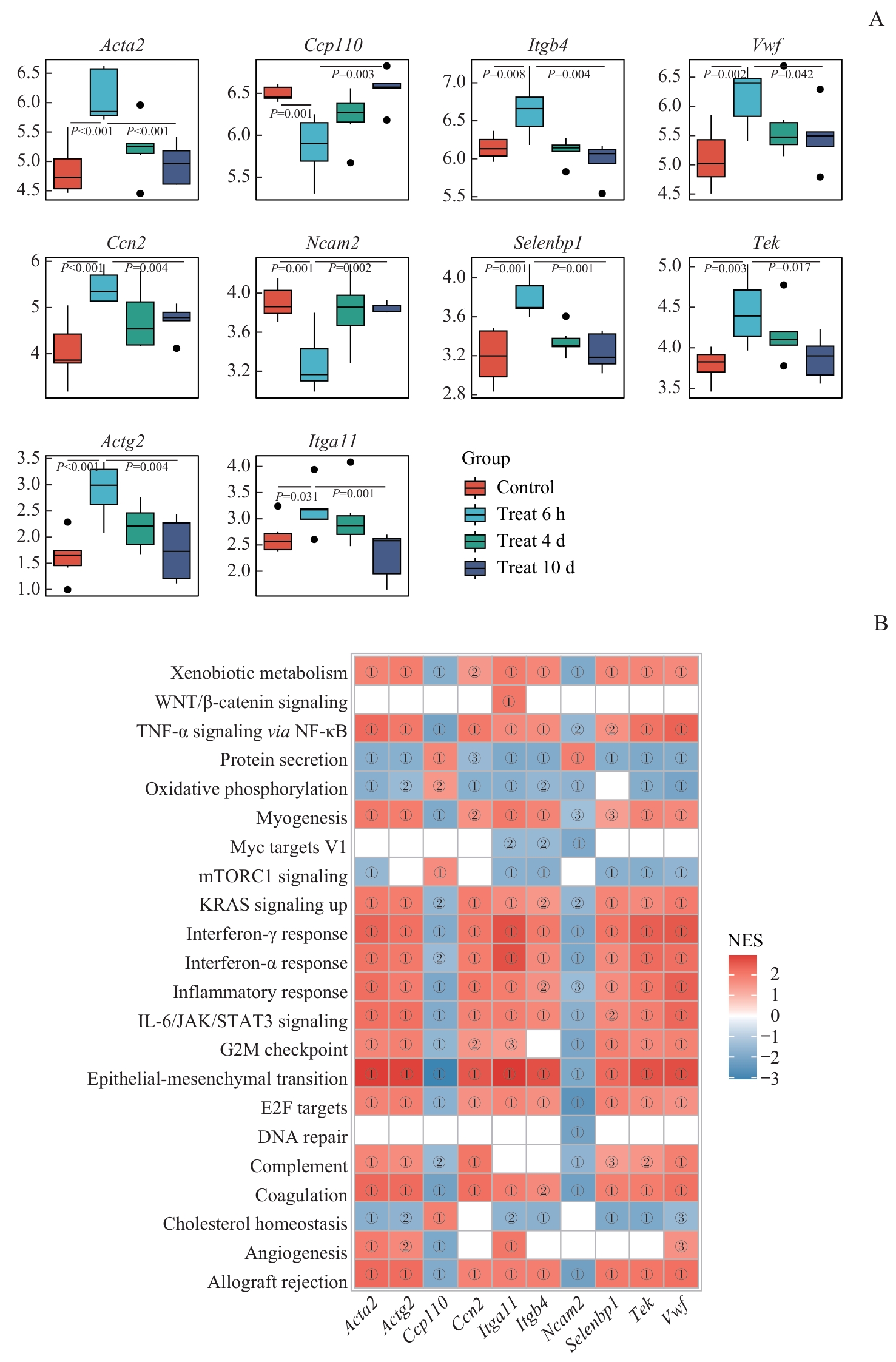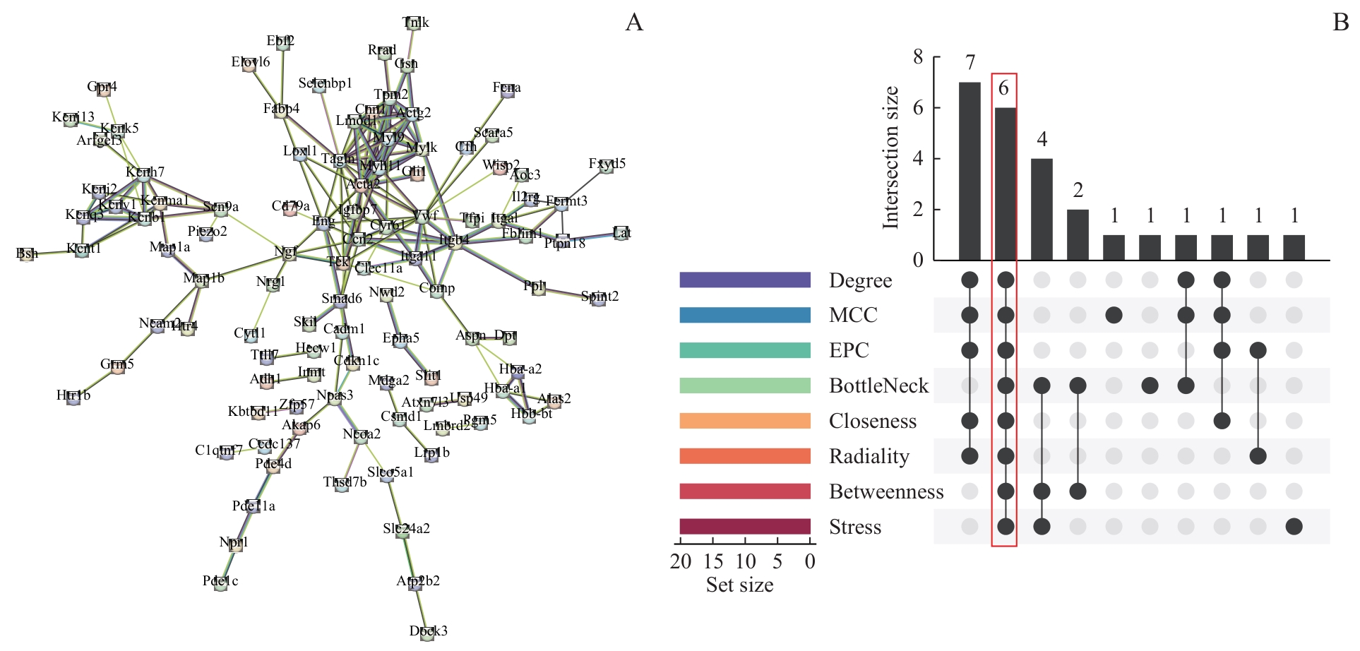 Objective ·To develop a multi-algorithm collaborative computational biology strategy for constructing a predictive model of the peripheral morphine tolerance network and for screening high-confidence candidate targets. Methods ·A murine model of morphine tolerance was established across multiple treatment time points. Bulk RNA sequencing was performed on harvested dorsal root ganglion (DRG) tissues. Using the expression matrix as a basis, a weighted gene co-expression network was constructed to identify co-expressed gene modules. Candidate genes were subsequently screened through the integration of differentially expressed genes (DEGs) with key weighted gene co-expression network modules. These candidates underwent functional annotation via Gene Ontology (GO) and Kyoto Encyclopedia of Genes and Genomes (KEGG) enrichment analyses. A protein-protein interaction (PPI) network was established, and hub genes were systematically identified using the cytoHubba algorithm. Three distinct machine learning approaches, least absolute shrinkage and selection operator (LASSO) regression, support vector machine recursive feature elimination (SVM-RFE) model, and random forest (RF) model, were strategically integrated to screen characteristic signature genes. Finally, gene set enrichment analysis (GSEA) was implemented to functionally validate both the hub and signature genes. Results ·Weighted gene co-expression network analysis (WGCNA) identified 8 297 key module genes, of which 177 candidate genes overlapped with DEGs. These genes were significantly enriched in biological processes including ion channel regulation and vascular smooth muscle contraction. A combination of PPI network analysis and machine learning revealed four signature genes [actin γ2, smooth muscle (Actg2), centriolar coiled-coil protein 110 (Ccp110), neural cell adhesion molecule 2 (Ncam2), and selenium binding protein 1 (Selenbp1)] and six hub genes [actin α2, smooth muscle (Acta2), von Willebrand factor (Vwf) , cellular communication network factor 2 (Ccn2), integrin β4 (Itgb4), integrin α11 (Itga11), and TEK receptor tyrosine kinase (Tek)] closely associated with morphine tolerance. Conclusion ·In this study, we successfully constructed a multi-algorithm collaborative peripheral nerve regulation network prediction model for morphine tolerance, and screened out 10 core genes with high confidence.