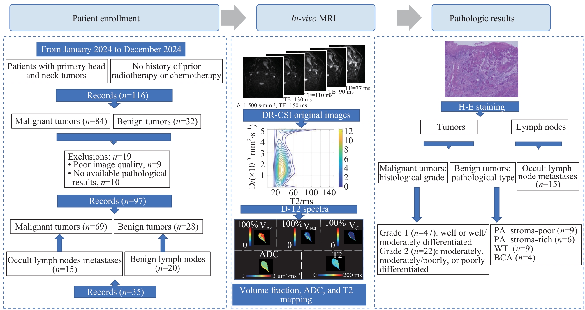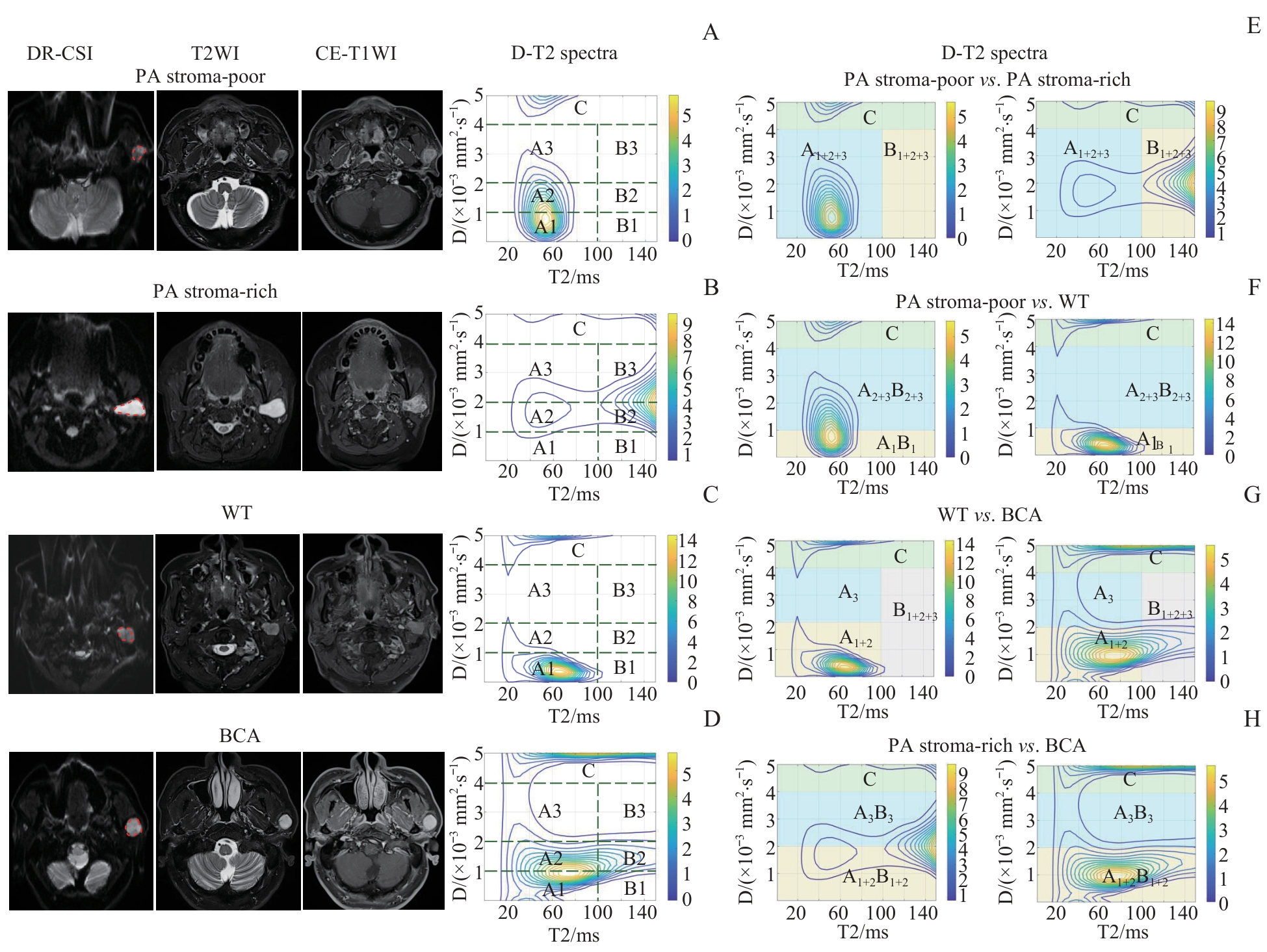 Key words: diffusion-relaxation correlation spectroscopic imaging, pleomorphic adenoma, Warthin's tumor, basal cell adenoma, head and neck squamous cell carcinoma, occult lymph node metastasis