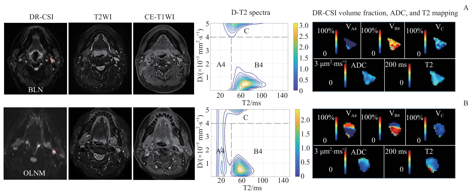 关键词: 磁共振弥散-弛豫耦合谱成像, 多形性腺瘤, 腺淋巴瘤, 基底细胞腺瘤, 头颈鳞癌, 隐匿性淋巴结转移