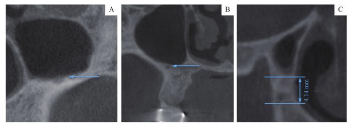 Note: Point A—The bottom of maxillary sinus in M1 tooth position; Point B—The intersection point of the parallel line and the medial wall of maxillary sinus; Point C—The intersection point of the parallel line and the lateral wall of maxillary sinus.