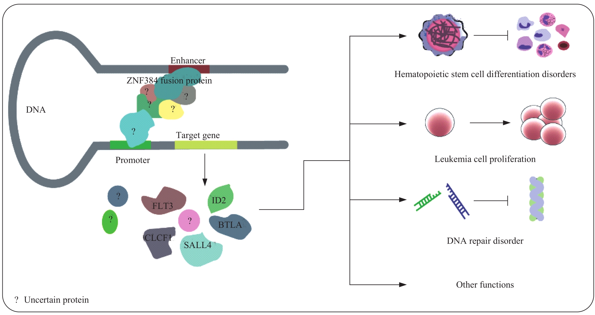 | 图3 ZNF384融合蛋白诱发AL的可能机制 |