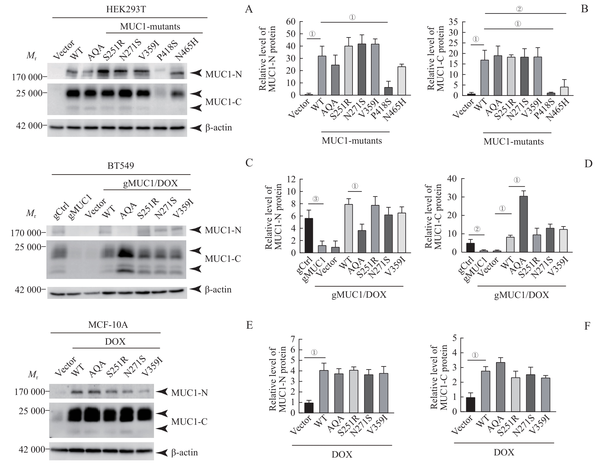 | Fig 2 Protein expression levels of MUC1-WT and mutants in the cells |