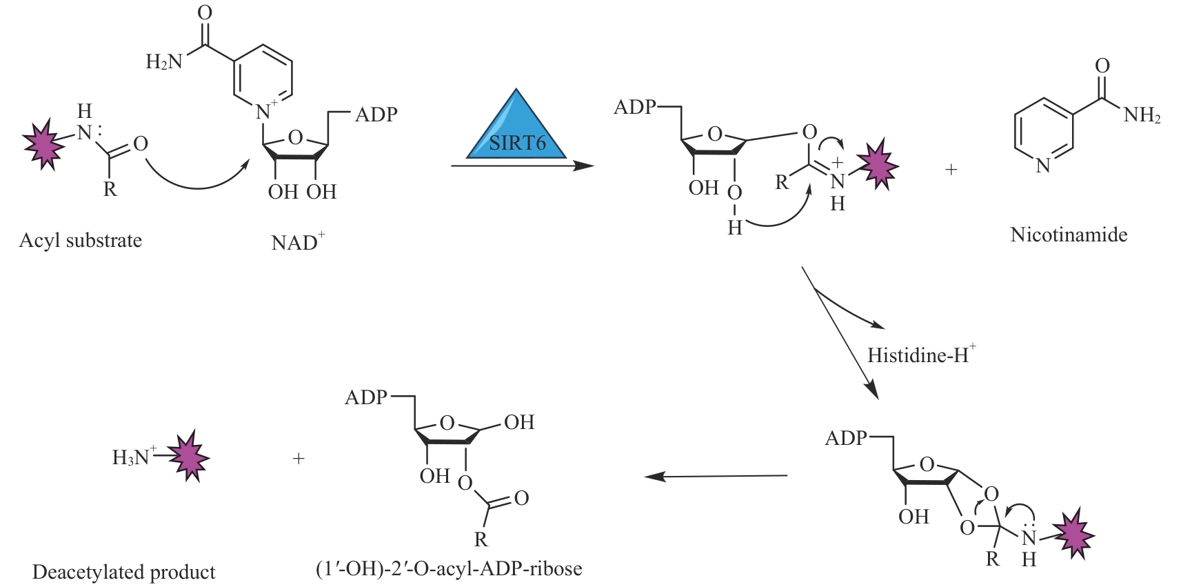 | Fig 2 Mechanism of SIRT6 catalyzing deacylation |