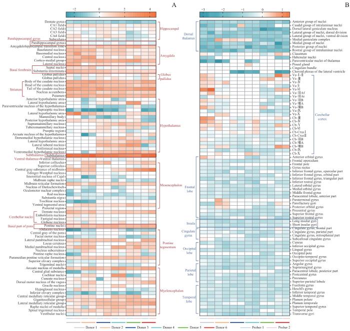2.1 NOS1 在人类全脑169个解剖结构的表达模式