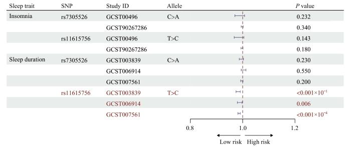 rs7305526和rs11615756与失眠和睡眠时长的相关性