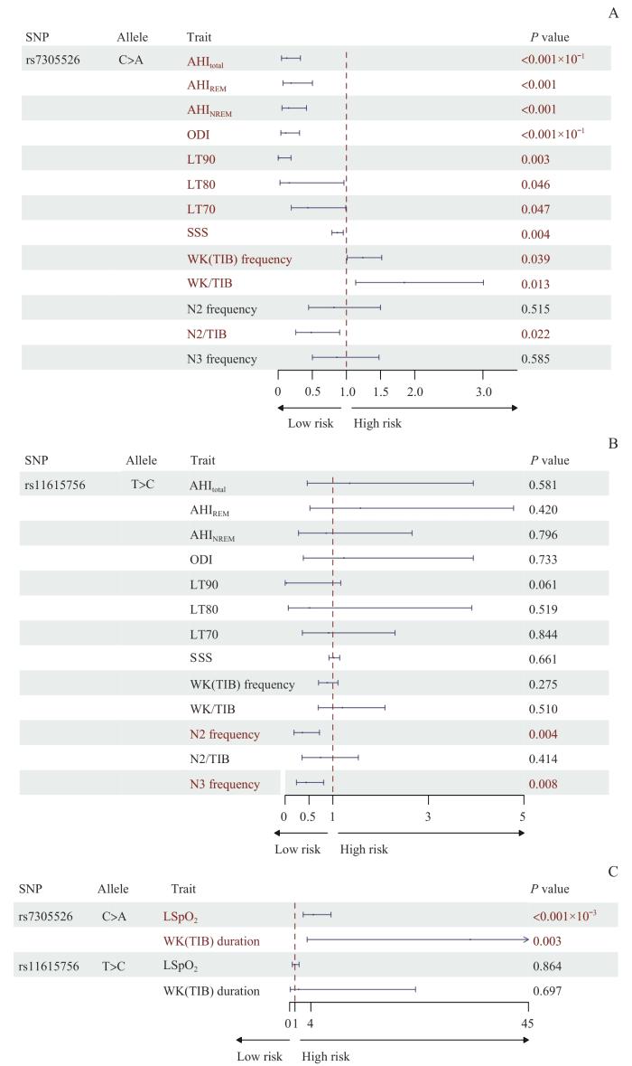 NOS1基因rs7305526和rs11615756遗传变异与人类睡眠性状及OSA呼吸、血氧事件和睡眠结构等临床数量性状密切相关,该基因有望成为纠正OSA患者通气障碍和睡眠结构紊乱的重要治疗靶点。