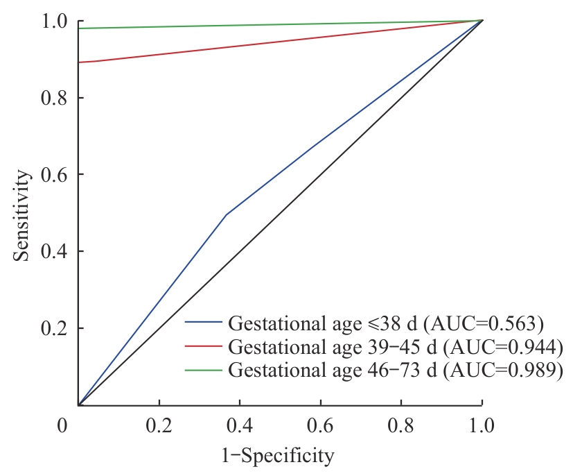 | 图1 不同孕龄患者术前超声检查行THP诊断的ROC曲线 |