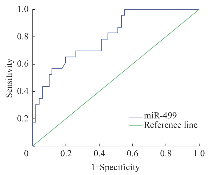 | Fig 2 ROC curve analysis of the value of miR-499 expression level in evaluating the severity of coronary artery disease |