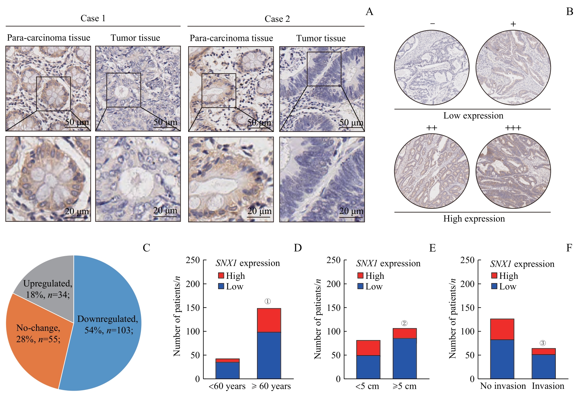 | Fig 3 Expression levels of SNX1 in CRC tissues and their correlation with clinical pathological information |