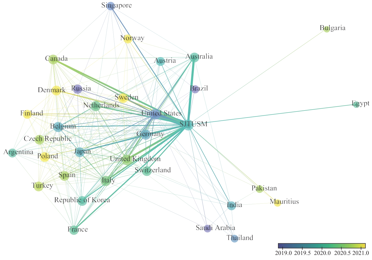 | Fig 4 Time line network graph of international collaboration with SJTUSM |