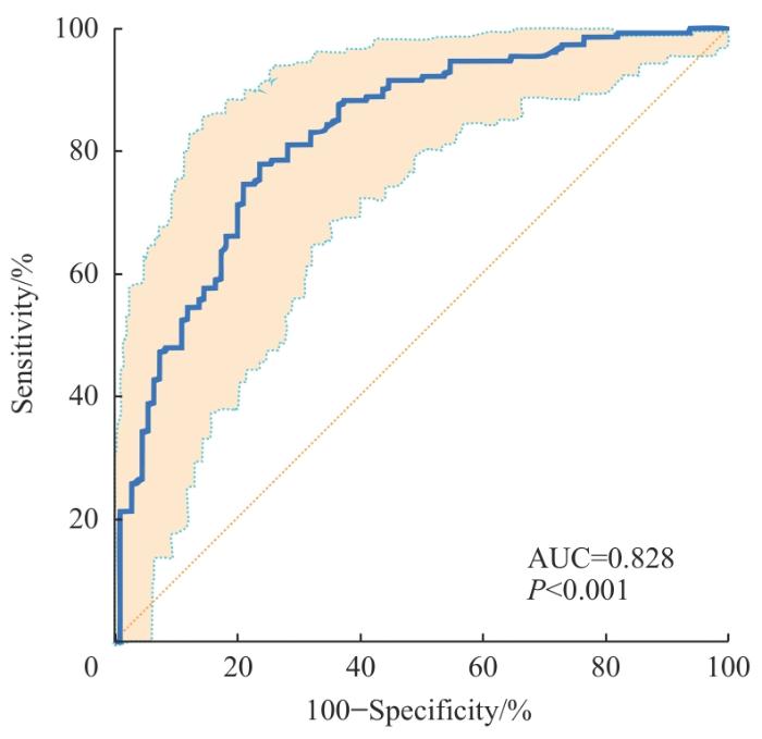 目的·探讨老年营养风险指数(geriatric nutritional risk index,GNRI)对住院老年2型糖尿病(type2 diabetes mellitus,T2DM)患者发生肺部感染的预测价值。方法·回顾性连续收集2022年6月至2024年6月期间在上海交通大学医学院附属同仁医院老年科住院治疗的老年T2DM患者。根据住院期间患者是否发生肺部感染分为感染组和非感染组,统计患者基线资料(性别、年龄、身高、体质量、糖尿病病程、合并症等)并计算GNRI。使用多变量Logistic回归模型筛选发生肺部感染的独立危险因素。应用受试者操作特征(receiver operating characteristic,ROC)曲线分析GNRI对T2DM患者发生肺部感染的预测价值。结果·共纳入264例住院老年T2DM患者,其中154例患者发生肺部感染。感染组的GNRI、血清白蛋白、白细胞、中性粒细胞比值、淋巴细胞比值、糖化血红蛋白、空腹血糖、白介素-6、C反应蛋白、降钙素原和非感染组差异有统计学意义(均P<0.05)。多变量Logistic回归分析显示,GNRI较低是发生肺部感染的独立危险因素(OR=0.798,95%CI 0.712~0.894;P<0.001)。相关性分析提示GNRI与C反应蛋白、降钙素原呈负相关。ROC曲线分析显示,GNRI预测肺部感染曲线下面积为0.828,敏感度为77.9%,特异度为76.6%。结论·GNRI较低是老年T2DM患者发生肺部感染的独立危险因素,同时对是否发生肺部感染有较好的预测价值。