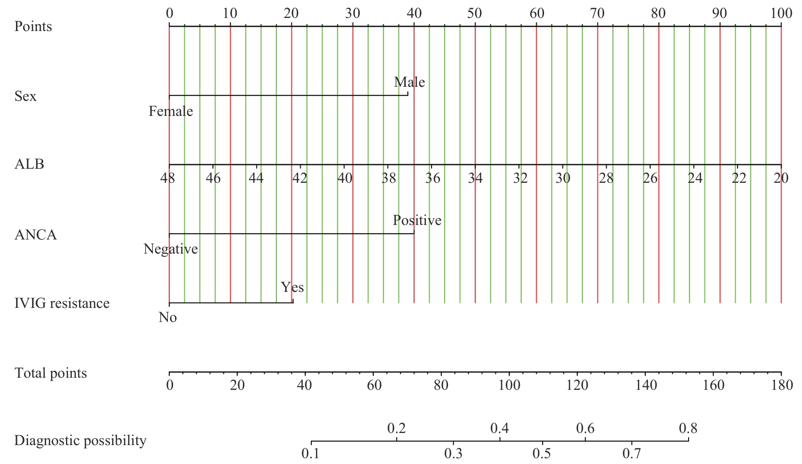 Nomogram for predicting the risk of coronary artery lesions in patients with Kawasaki disease based on anti-neutrophil cytoplasmic antibodies |