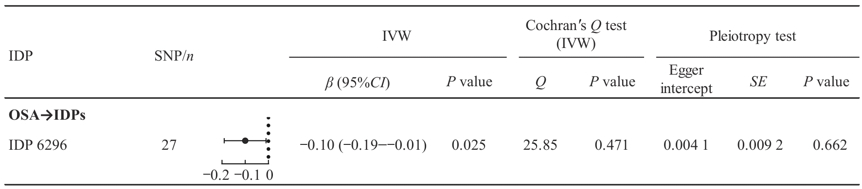 阻塞性睡眠呼吸暂停与脑成像衍生表型的双向孟德尔随机化研究 |