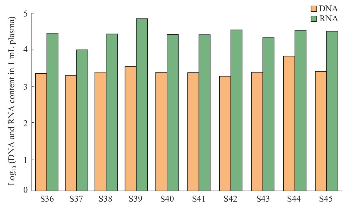 | Fig 7 Comparison of cfDNA and cfRNA content in plasma from 10 samples |