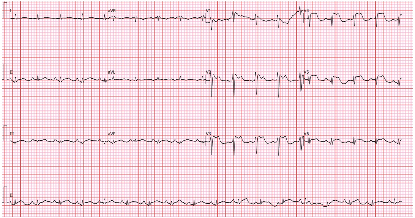 : Type Ⅱ Bruagda wave and ST-segment elevation.