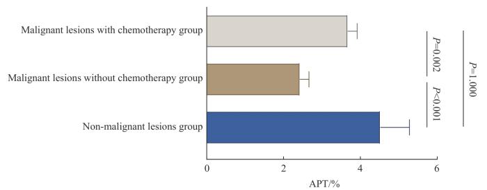 Tab 5 APT and ADC values, and TIC classifications in APTw group patients with malignant lesions, comparing those who received chemotherapy with those who did not