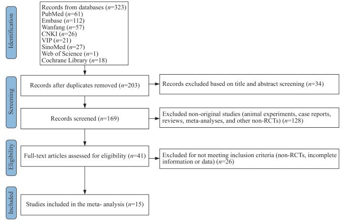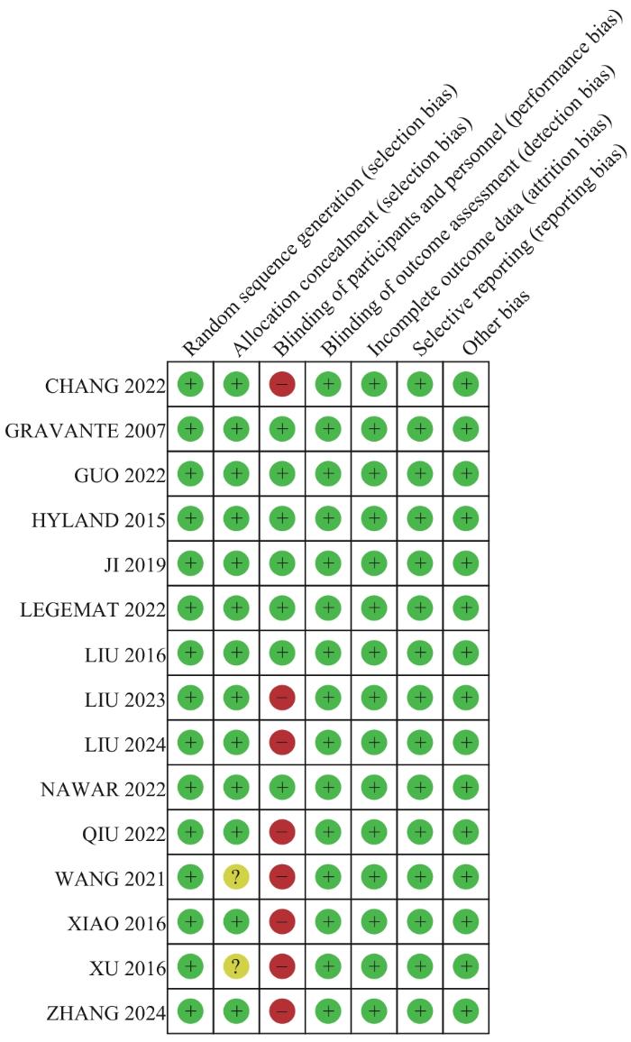 符合纳入标准的文献由2名具有系统评价研究经验的研究生独立进行全文审阅,并交叉核对所提取的研究特征及结局指标数据。所有研究者均接受过PRISMA(Preferred reporting items for systematic reviews and meta-analyses)声明及Cochrane系统评价方法学培训。针对数据提取过程中出现的分歧,2名研究者通过讨论达成共识,必要时交给第三位研究者进行仲裁。